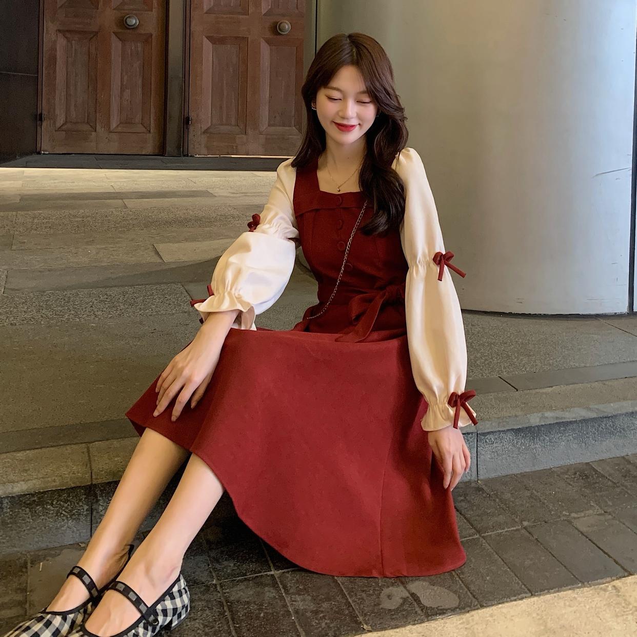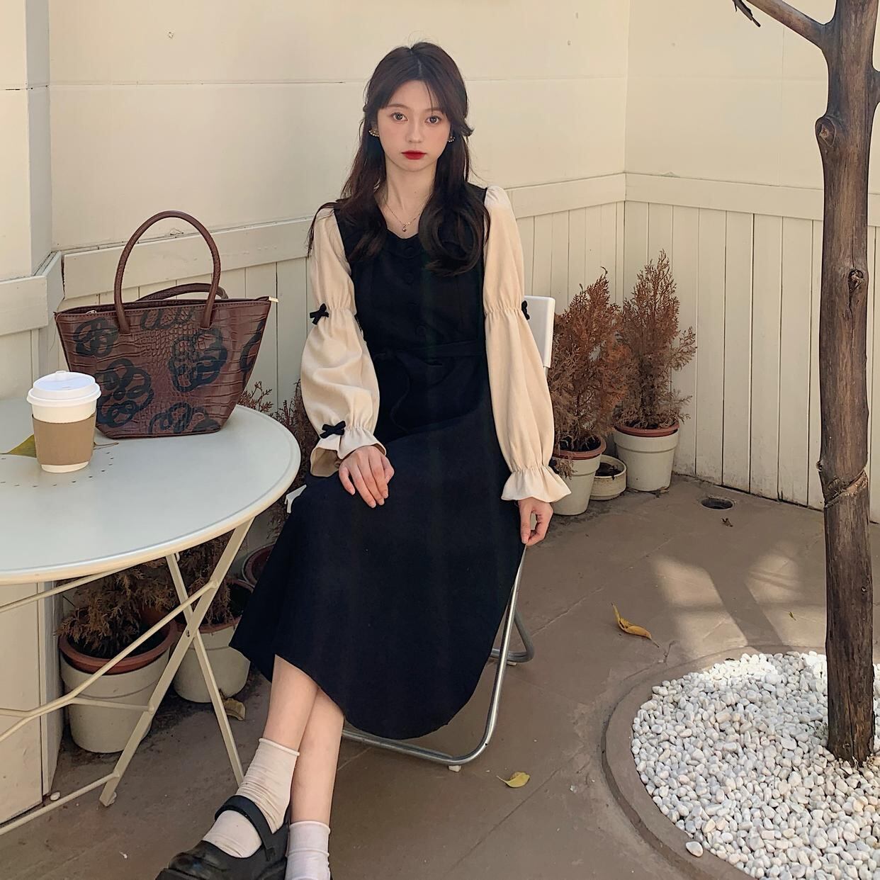 ワンピース フレアワンピース ミモレ ミモレ丈 長袖 ボリューム袖 ラウンドネック リボン 大人可愛い カジュアル 大人 おしゃれ お洒落 ラブリー キュート ガーリー 秋 冬 2023 10代 20代 レディース キッズ 女の子 学生 通学 デート お出かけ 女子会 休日 普段使い お揃い ファッション コーデ スタイル L XL 2XL 3XL 4XL 黒 ブラック 赤 レッド 茶色 ブラウン | ATAOI