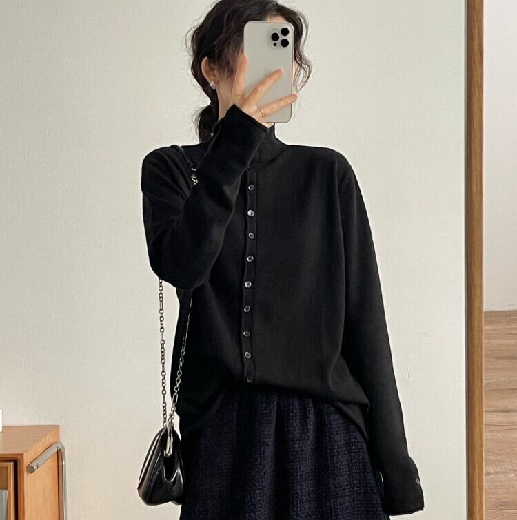トップス アウター カーディガン ニット 上着 袖あり 長袖 タートルネック ハイラウンドネック ストレート 前開き ボタン 着回し 大人可愛い きれいめ シンプル カジュアル 大人 上品 おしゃれ お洒落 大人女子 こなれ感 シンプル シック 無地 秋 冬 10代 20代 30代 40代 50代 レディース 女性用 OL 通勤 学生 通学 デート お出かけ 休日 ショッピング レストラン オルチャンファッション シンプルコーデ スタイル フリーサイズ カラー ブラック グレー | ATAOI
