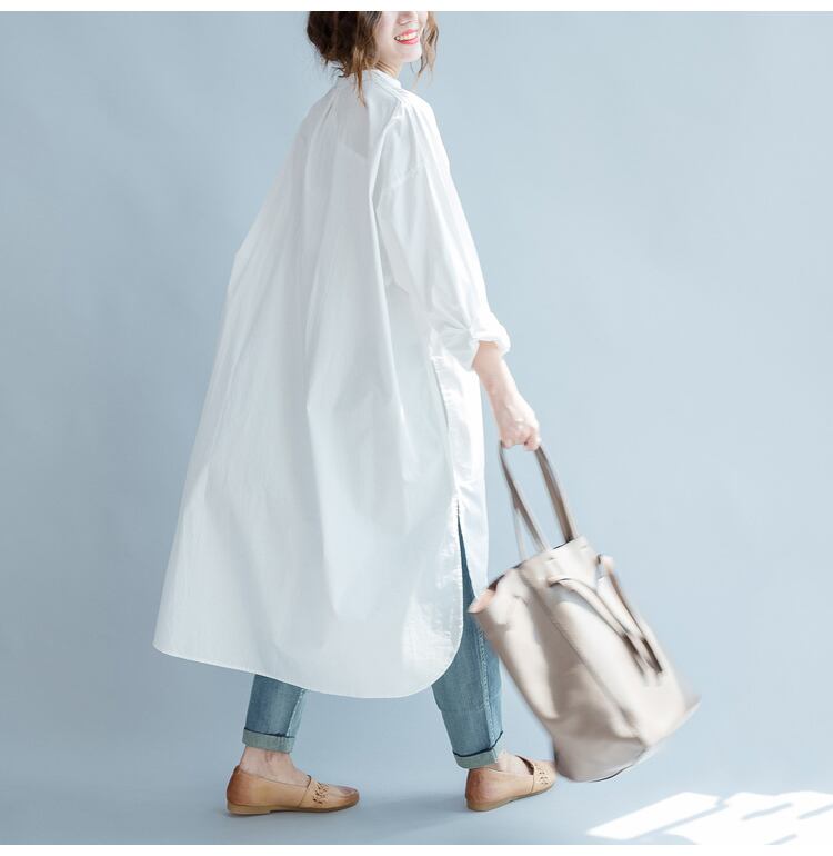 トップス ロング丈シャツ ブラウス 襟付き スタンダード襟 スリーブ 袖あり 長袖 Vネック 前開き ボタンルーズフィット ポケット モダン 羽織 可愛い 上品 おしゃれ シック シンプル カジュアル 重ね着 無地 春 秋 冬 着回し 10代 20代 30代 40代 レディース 女性用 OL 学生 通勤 オフィス デート お出かけ ショッピング レストラン ホテル 旅行 オルチャンファッション スタイリッシュコーデ スタイル トレンド フリーサイズ カラー ホワイト | ATAOI
