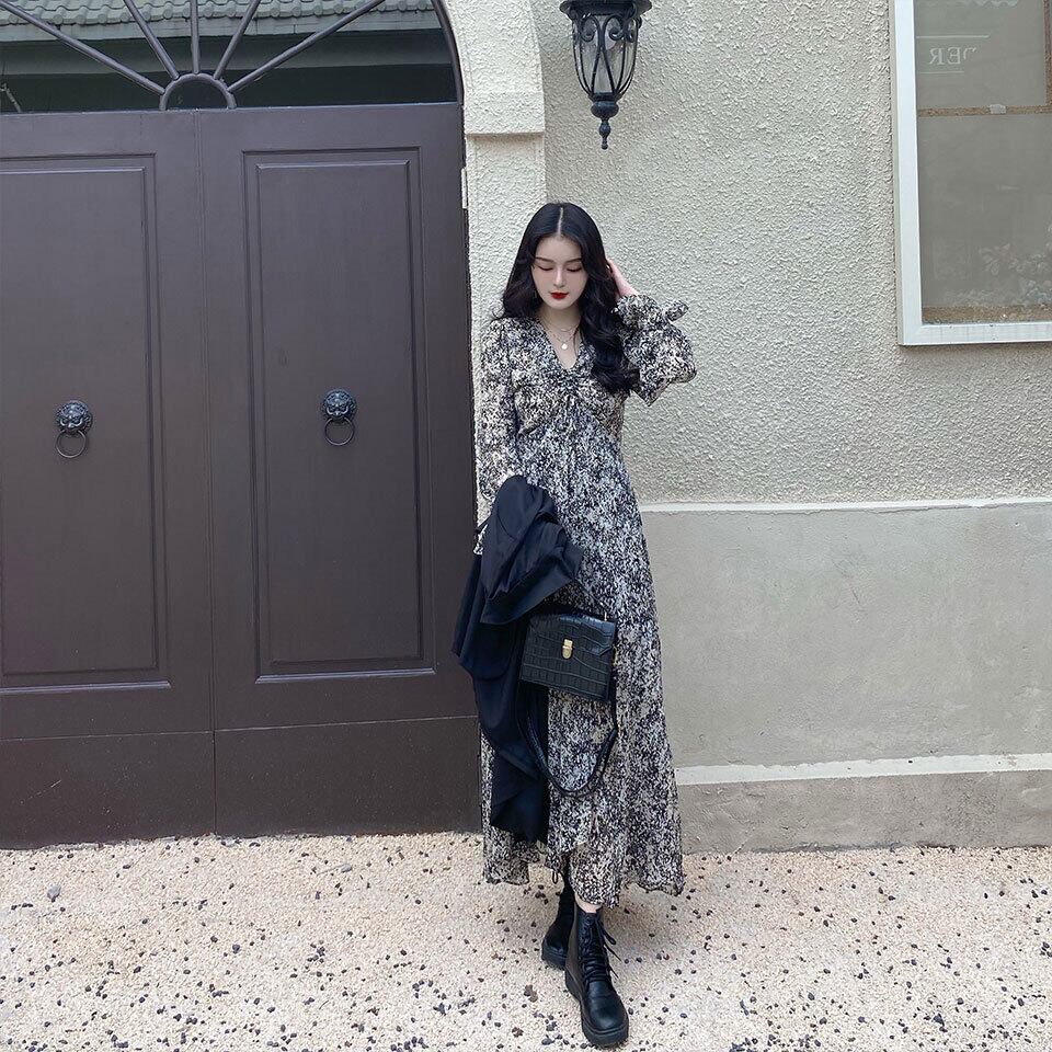 ワンピース シフォンワンピース フレアスカート ミモレ丈 袖あり 長袖 フレア袖 Vネック Aライン ジッパー開閉 ハイウエスト ルーズフィット プルオーバー 大人可愛い カジュアル シック シンプル カジュアル 重ね着 着回し 柄 春 秋 10代 20代 30代 40代 レディース 女性用 デート お出かけ ショッピング レストラン ホテル 旅行 オルチャンファッション モテコーデ スタイル トレンド 大きいサイズ サイズ M L XL 2XL 3XL 4XL カラー 写真の色 | ATAOI