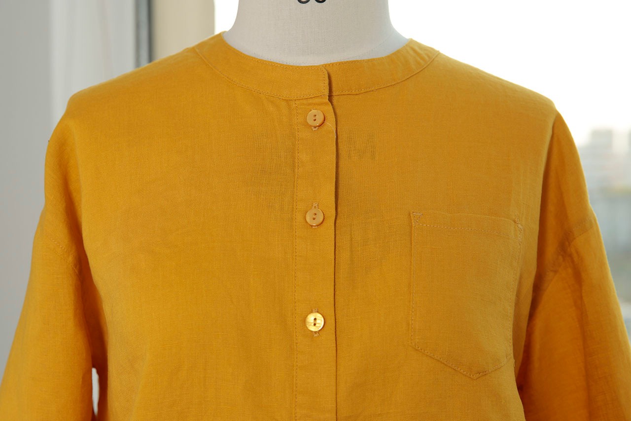トップス シャツ ブラウス リネンシャツ スタンドカラー 七分袖 袖あり ラウンドネック ボタン ルーズフィット レトロ 可愛い 上品 おしゃれ シック シンプル カジュアル 重ね着 無地 春 秋 夏 着回し 10代 20代 30代 40代 レディース 女性用 OL 学生 通勤 オフィス デート お出かけ ショッピング レストラン ホテル 旅行 オルチャンファッション カジュアルコーデ スタイル トレンド フリーサイズ カラー ベージュ ピンク イエロー グリーン ブルー ホワイト | ATAOI
