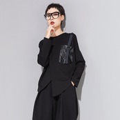 シャツ カットソー プルオーバー トップス Tシャツ 袖あり 長袖 ラウンドネック スリット イレギュラーヘム ポケット きれいめ シンプル カジュアル 大人 上品 おしゃれ かっこいい 大人女子 こなれ感 メンズライク ボーイッシュ クール モード系 モダン 無地 春 秋 10代 20代 30代 40代 レディース 通勤 学生 通学 デート お出かけ 女子会 休日 旅行 ホテル レストラン 着回し 普段使い ファッション コーデ スタイル サイズ M L XL 大きいサイズ ブラック | ATAOI
