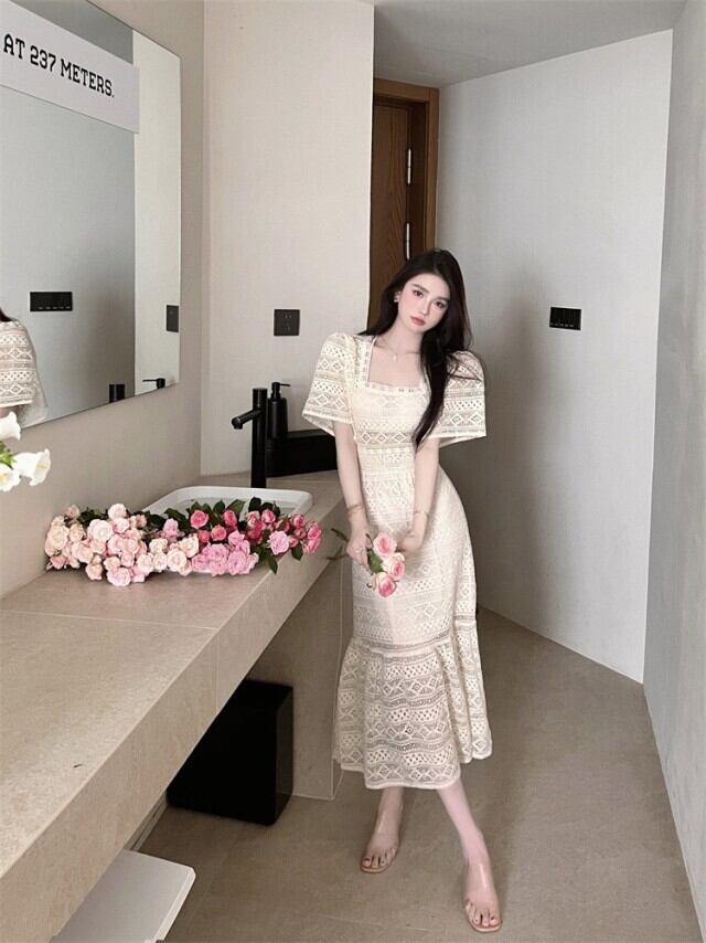 ワンピース ミモレ ミモレ丈 袖あり 半袖 ラウンドネック マーメイド クロシェ 大人可愛い きれいめ 大人 上品 おしゃれ お洒落 大人女子 こなれ感 ラブリー キュート ガーリー 主役級 春 夏 2023 10代 20代 30代 40代 レディース 女性用 デート お出かけ 女子会 休日 リゾート 旅行 ホテル ガーデン レストラン 普段使い オルチャン ファッション コーデ スタイル S M L 白 ホワイト | ATAOI