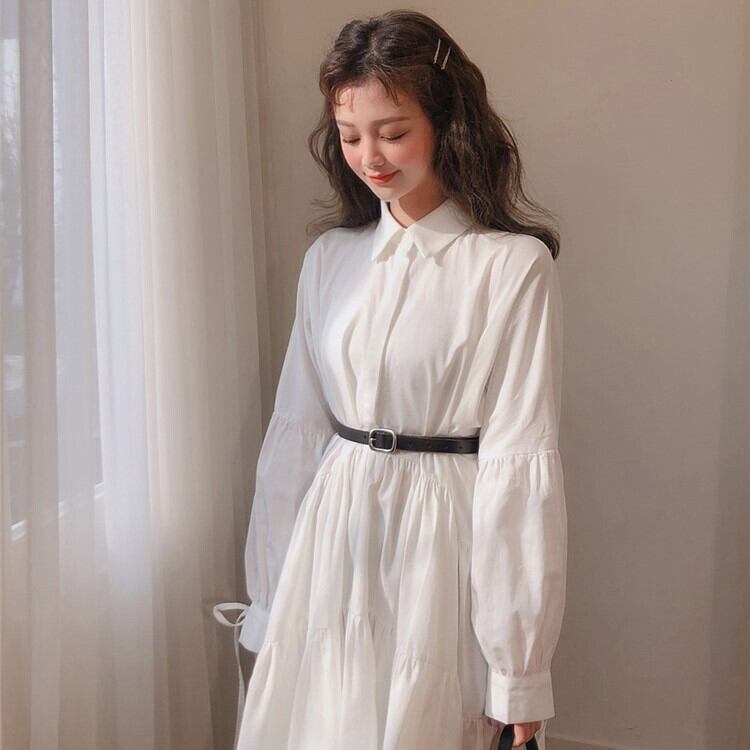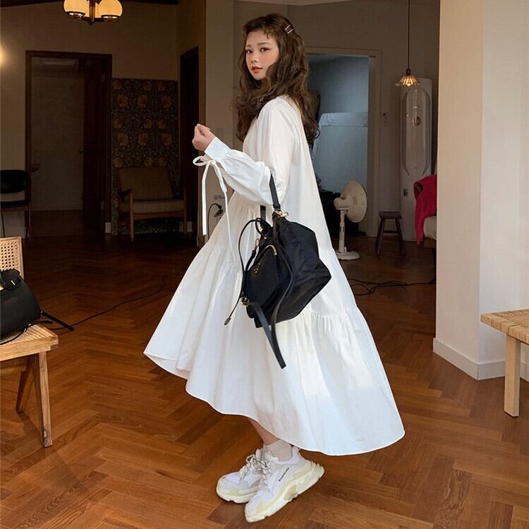 ワンピース シャツワンピース フレアワンピース 膝丈 ひざ丈 膝下 ミモレ ミモレ丈 袖あり 長袖 襟付き アシンメトリー かわいい 大人可愛い きれいめ カジュアル 大人 上品 おしゃれ お洒落 大人可愛い 大人女子 こなれ感 ラフ ラブリー キュート ガーリー 無地 春 秋 10代 20代 30代 レディース 女性用 ママ マタニティ 学生 デート お出かけ 女子会 お泊まり 休日 旅行 重ね着 韓国 韓国系 オルチャン ファッション モテ ホワイト 白 サイズ展開 色展開 着回し 普段使い お揃い | ATAOI