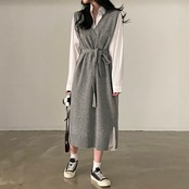 ワンピース シャツワンピース ミモレ ミモレ丈 ロング ロング丈 ノースリーブ Vネック ストレート ウエストマーク きれいめ シンプル カジュアル 大人 上品 おしゃれ お洒落 かっこいい 大人女子 こなれ感 ラフ 無地 春 秋 冬 2023 10代 20代 30代 40代 50代 60代 レディース 女性用 通勤 学生 通学 お出かけ 休日 アウトドア 普段使い 重ね着 ファッション コーデ スタイル 楽ちん フリーサイズ 黒 ブラック 灰色 グレー | ATAOI