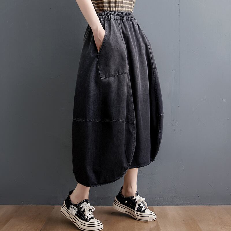 デニムスカート ロングスカート 大きいサイズ スカート ボトムス 膝下 ロング ロング丈 ポケット ハイウエスト ウエストゴム デニム かわいい カジュアル おしゃれ お洒落 かっこいい こなれ感 ラフ ガーリー ルーズ 個性的 存在感 無地 春 夏 秋 冬 オールシーズン シーズンレス ロングシーズン 10代 20代 30代 レディース 女性用 学生 デート お出かけ 女子会 ホテル ランチ ショッピング 着回し 普段使い 体系カバー M L XL 2XL ブラック 個性派 カジュアルコーデ | ATAOI