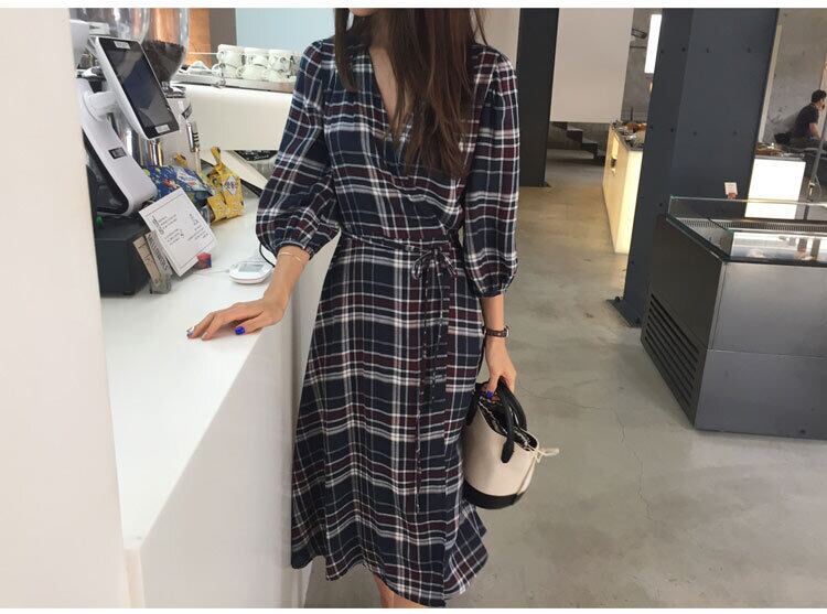 aラインワンピース ワンピース ミモレ丈ワンピース 膝下 ミモレ ミモレ丈 袖あり 7分袖 七分袖 Vネック カシュクール 襟なし Aライン ウエストリボン ハイウエスト かわいい おしゃれ お洒落 ラブリー キュート ガーリー 存在感 ナチュラル スマート 柄 チェック柄 格子柄 春 夏 秋 ロングシーズン 10代 20代 30代 レディース 女性用 学生 デート お出かけ 女子会 お茶会 ランチ ショッピング 着回し 普段使い 重ね着 モテ 体系カバー 脚長 細見え スタイルアップ S M L XL | ATAOI