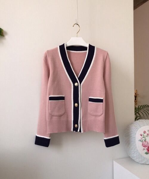 トップス ニットソー カーディガン 袖あり 長袖 Vネック 襟なし ニット かわいい 大人可愛い きれいめ シンプル カジュアル 大人 上品 おしゃれ かっこいい レトロ 大人可愛い 大人女子 こなれ感 ラブリー キュート モダン 無地 春 秋 10代 20代 30代 レディース 女性用 通勤 学生 通学 デート お出かけ 女子会 休日 着回し 普段使い 韓国系 コーデ スタイル S M L ライトブルー ピンク バイカラー | ATAOI