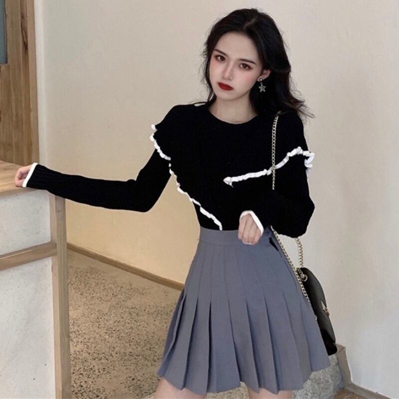 フリルニットトップス アプリコット グリーン ブラック トップス ニットソー 袖あり 長袖 萌袖 ラウンドネック 襟なし フリル 伸縮性 かわいい 大人可愛い きれいめ 大人 上品 おしゃれ お洒落 清楚 大人女子 ラブリー キュート ガーリー 存在感 無地 春 秋 冬 ロングシーズン 10代 20代 30代 40代 レディース 女性用 女の子 学生 デート お出かけ 女子会 イベント ホテル レストラン お茶会 ランチ ショッピング 着回し 普段使い 重ね着 モテ フリーサイズ ワンサイズ | ATAOI