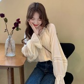 ブラウス トップス シャツ 袖あり 長袖 ボリューム袖 ラウンドネック レース シフォン フリル 前開き フロントボタン 薄手 かわいい 大人可愛い きれいめ カジュアル 大人 上品 おしゃれ 大人女子 こなれ感 キュート ガーリー 無地 春 夏 10代 20代 30代 40代 レディース 通勤 学生 通学 デート お出かけ 女子会 休日 イベント リゾート 旅行 ホテル レストラン 着回し 普段使い オルチャン ファッション コーデ スタイル ゆる ワンサイズ アプリコット | ATAOI