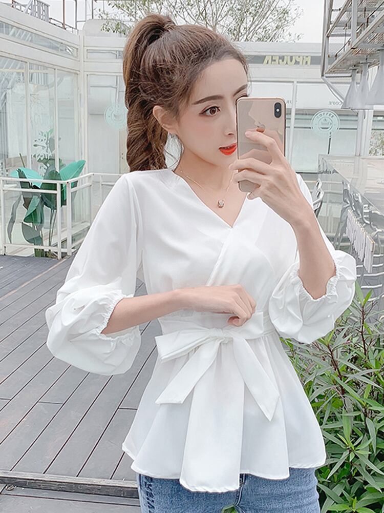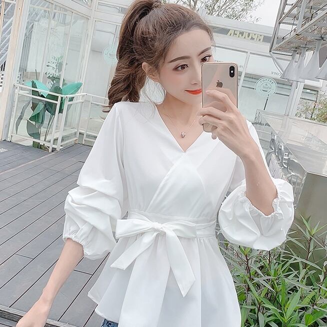トップス ブラウス 袖あり 長袖 カシュクール 襟なし ウエストリボン かわいい 大人可愛い きれいめ シンプル カジュアル 大人 上品 おしゃれ かっこいい 大人可愛い 大人女子 こなれ感 ラブリー キュート モダン 無地 春 秋 10代 20代 30代 レディース 女性用 通勤 学生 通学 デート お出かけ 女子会 休日 着回し 普段使い 韓国系 コーデ スタイル S M L XL ホワイト レッド オレンジ | ATAOI
