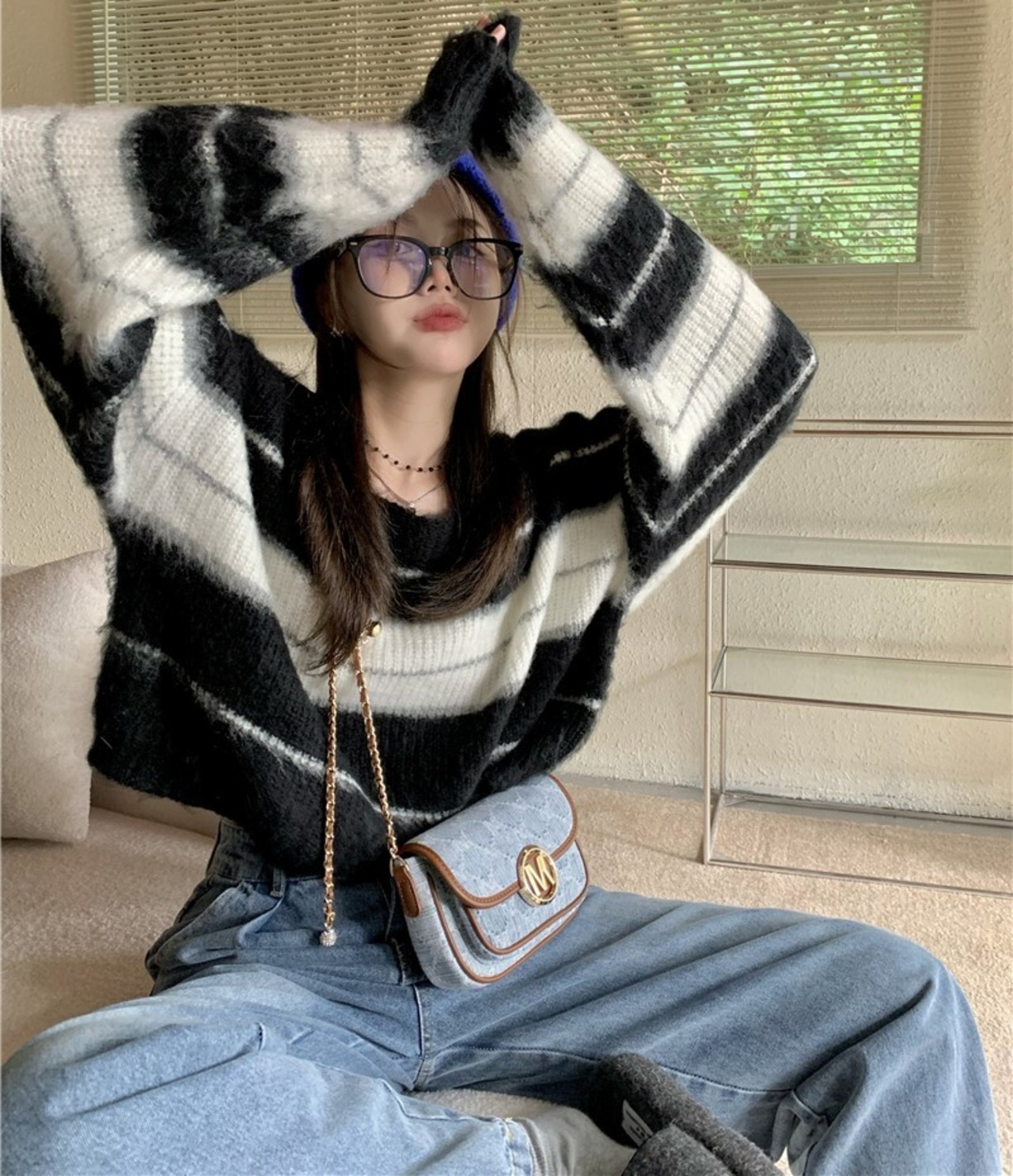 トップス ニット カーディガン 袖あり 長袖 もこもこ モコモコ ふわふわ クルーネック ボーダー 大人可愛い カジュアル 大人 おしゃれ お洒落 大人女子 こなれ感 ラブリー キュート ガーリー 春 秋 冬 2023 10代 20代 30代 40代 レディース 女性用 女の子 OL 通勤 学生 通学 デート お出かけ 女子会 休日 普段使い 公園 ショッピング リラックス ゆったりサイズ 重ね着 ファッション コーデ スタイル ワンサイズ フリーサイズ イエロー グレー ブラック ホワイト | ATAOI