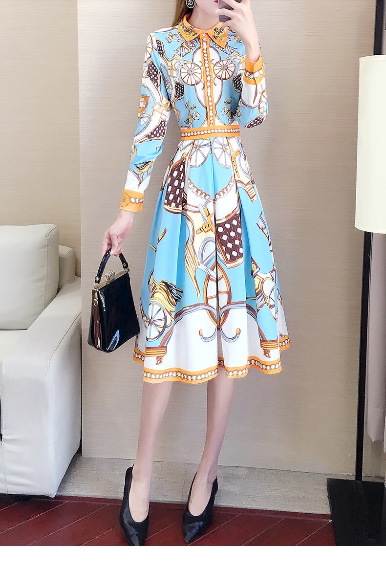 シャツワンピース シャツワンピ ブルー ワンピース 膝丈 ひざ丈 袖あり 長袖 襟付き Aライン ウエストマーク ハイウエスト かわいい 大人可愛い きれいめ 大人 上品 おしゃれ お洒落 レトロ 大人女子 個性的 エレガント 主役級 存在感 柄 春 秋 20代 30代 40代 レディース 女性用 デート お出かけ 女子会 パーティー イベント ホテル レストラン お呼ばれ お茶会 ランチ モテ 体系カバー 美脚 脚長 インスタ映え S M L XL ひざ丈ワンピース 膝丈ワンピース Aラインワンピース | ATAOI