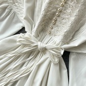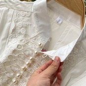 シャツワンピース ホワイト ワンピース 袖あり 長袖 襟付き スタンドカラー レース 刺繍 リボン ウエストマーク ウエストリボン ボタン パール かわいい 大人可愛い きれいめ 大人 上品 おしゃれ お洒落 清楚 大人女子 ラブリー キュート ガーリー エレガント 存在感 無地 春 秋 冬 ロングシーズン 10代 20代 30代 40代 レディース 女性用 学生 デート お出かけ パーティー イベント ホテル レストラン お呼ばれ お茶会 ランチ ショッピング 着回し モテ 美脚 フリーサイズ | ATAOI
