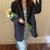 Vネックとウエストマークで華奢見えが叶う1枚です。