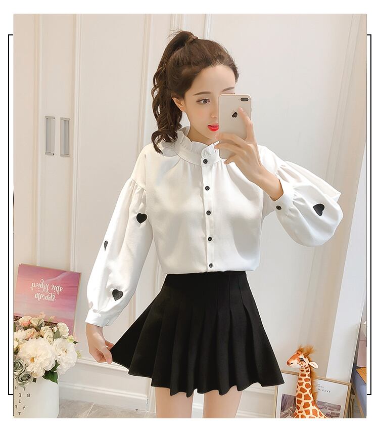 ハート刺繍 大きいサイズ 小さいサイズ トップス シャツ ブラウス 白シャツ 白トップス 袖あり 長袖 襟付き 刺繍 前開き ボタン かわいい 大人可愛い 大人 おしゃれ お洒落 ラブリー キュート ガーリー 存在感 柄 ハート柄 春 秋 冬 ロングシーズン 10代 20代 30代 レディース 女性用 女の子 学生 デート お出かけ 女子会 お茶会 ランチ ショッピング 着回し 普段使い 重ね着 韓国 韓国系 オルチャン モテ 二の腕カバー S M L XL 2XL ホワイト ベージュ ピンク | ATAOI
