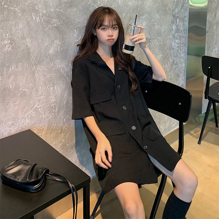 ワンピース シャツワンピース 袖あり 半袖 Vネック 襟付き かわいい 大人可愛い きれいめ シンプル カジュアル 大人 上品 おしゃれ かっこいい 大人可愛い 大人女子 こなれ感 ラブリー キュート モダン 無地 春 秋 10代 20代 30代 レディース 女性用 通勤 学生 デート お出かけ 女子会 休日 着回し 普段使い 韓国系 コーデ スタイル S M L XL 2XL 3XL 4XL ブラック | ATAOI