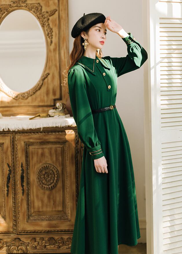 ワンピース ミモレ ミモレ丈 袖あり 長袖 襟付き 大人可愛い きれいめ シンプル 大人 上品 おしゃれ お洒落 大人女子 こなれ感 ラブリー キュート ガーリー エレガント 無地 春 秋 冬 2023 10代 20代 30代 レディース 女性用 学生 通学 デート お出かけ 女子会 休日 ホテル ガーデン レストラン 普段使い ファッション コーデ スタイル S M L XL 黒 ブラック 緑 グリーン | ATAOI