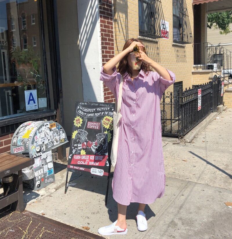 ワンピース シャツワンピース Aラインスカート ロング ロング丈 袖あり 長袖 シャツ襟 ストライプ 前開き かわいい 大人可愛い きれいめ おしゃれ 清楚 大人女子 ラブリー キュート 爽やか 春 夏 秋 ロングシーズン 10代 20代 30代 40代 レディース 女性用 OL 学生 デート お出かけ 女子会 普段使い 重ね着 脚長 オルチャンファッション カジュアルコーデ スタイル サイズ S M L XL ブルー ピンク | ATAOI
