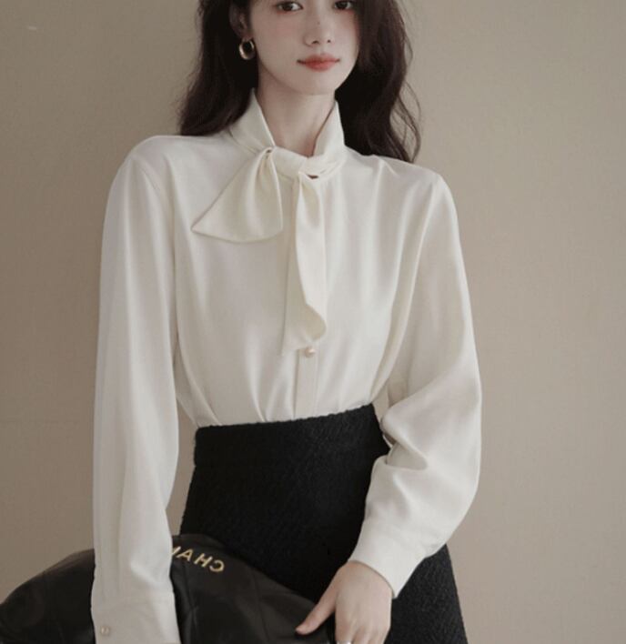 トップス ブラウス 袖あり 長袖 襟なし リボン かわいい 大人可愛い シンプル カジュアル 大人 おしゃれ お洒落 かっこいい レトロ 大人可愛い 大人女子 こなれ感 ラフ キュート ガーリー ルーズ 個性的 主役級 無地 春 夏 秋 冬 レディース デート お出かけ 着回し 普段使い 韓国 韓国系 オルチャン ファッション コーデ モテ プレゼント 定番 | ATAOI