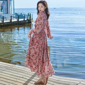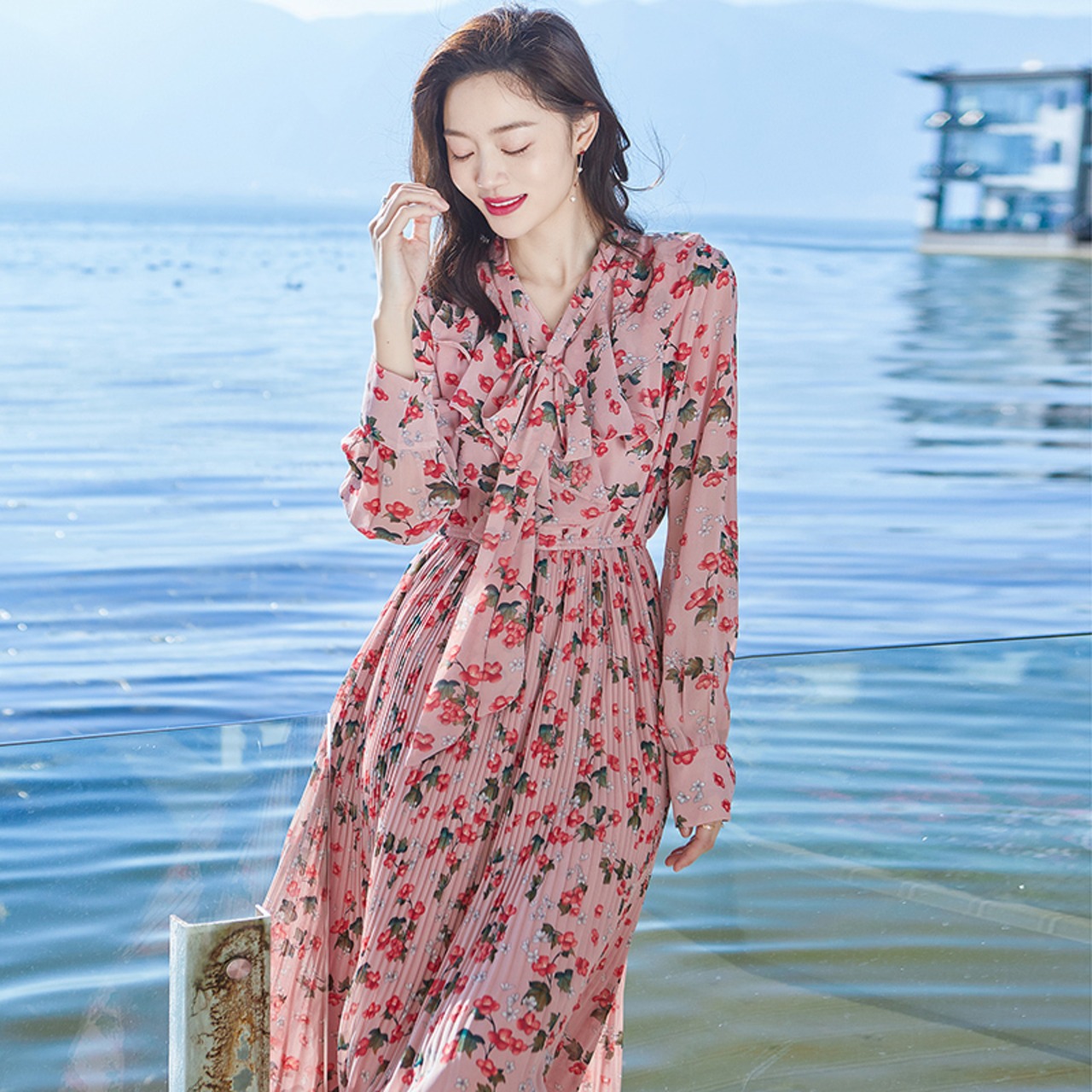 ワンピース 花柄ワンピース ロングワンピース ロング ロング丈 袖あり 長袖 リボンタイ 襟なし Aライン ウエストマーク ハイウエスト かわいい 大人可愛い きれいめ 大人 上品 おしゃれ お洒落 清楚 大人女子 ラブリー キュート ガーリー エレガント 存在感 シック スマート 柄 花柄 フラワー 夏 春 秋 ロングシーズン 10代 20代 30代 40代 レディース 女性用 学生 デート お出かけ 女子会 パーティー イベント ホテル サイズ S M L XL 色展開 ピンク | ATAOI